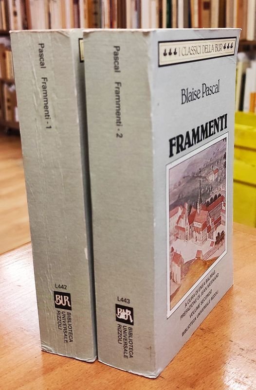 Frammenti, 2 volumi. A cura di Enea Balmas ; con una prefazione di Jean Mesnard ; in appendice! La vita di Pascal scritta da sua sorella Gilberte Perier, e tre opuscoli