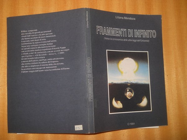 LILIANA MENDOZA, frammenti d'infinito. verso la conoscenza delle altre leggi dell'Universo - Tiemme Manduria, 1991 - copertina morbida, formato cm. 17 x 24,5, pag. 150 - ottimo stato, compatto, senza segni lettura, lievissimi segni tempo, timbro biblioteca per la pagina di risguardo