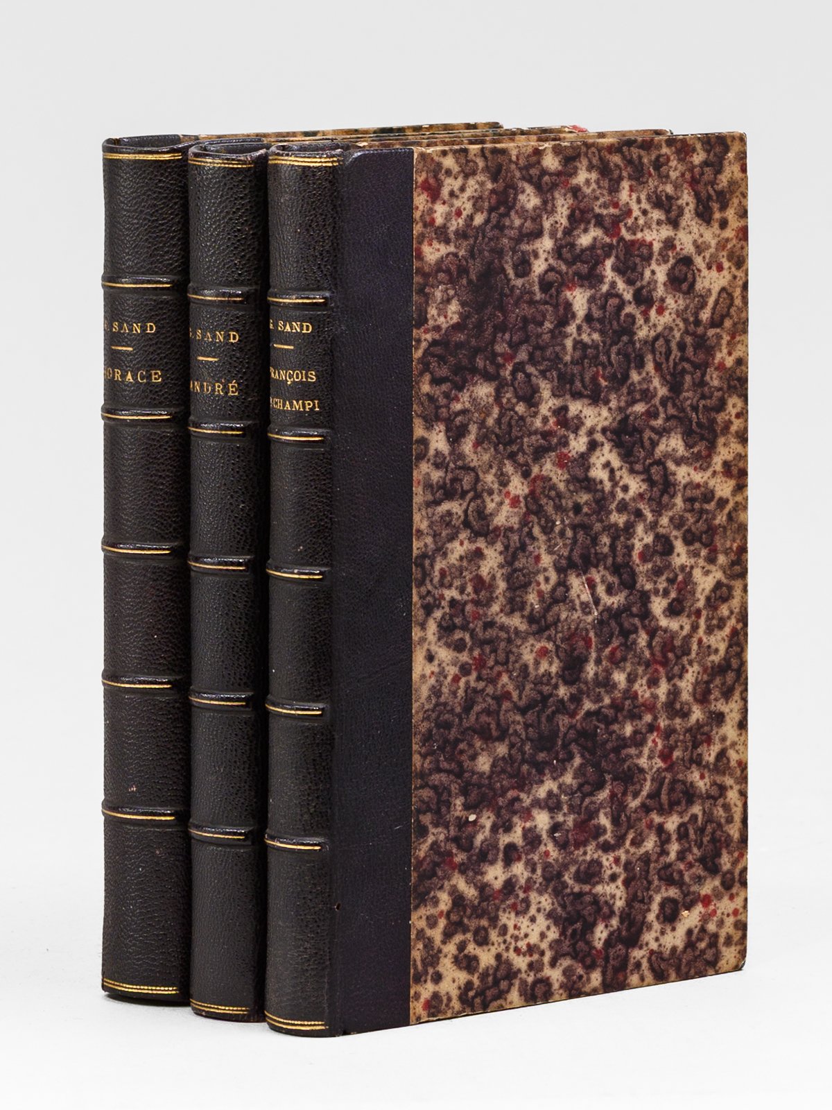 Nouvelle édition, 3 vol. in-12 reliure de l'époque demi-chagrin noir, dos à 5 nerfs dorés, Oeuvres de George Sand, Michel Lévy Frères, Paris, 1863, 1868 et 1857 (Lévy et Hetzel) Bon état pour cet ensemble de 3 romans de George Sand, en reliure uniforme. Bon état (qq. feuillets maladroitement coupés dans le premier titre, bon exemplaire par ailleurs).