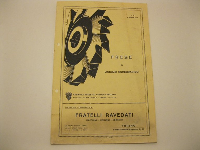 Frese di acciaio superrapido. Fabbrica frese ed utensili speciali. Fratelli Ravedati