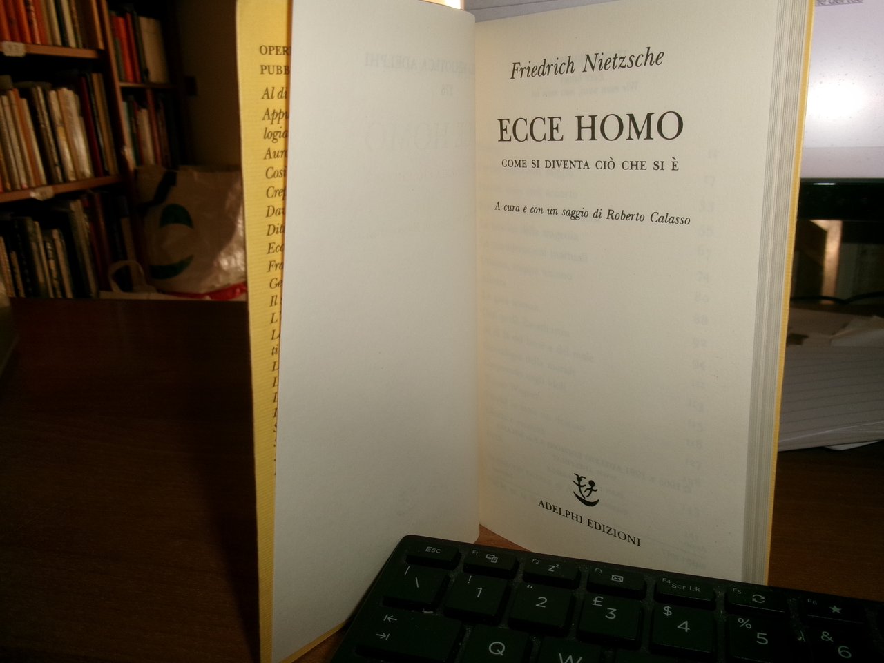 FRIEDRICH NIETZSCHE. Milano, Adelphi, 1991. ECCE HOMO come si diventa ciò che si è. In-16°, cartoncino edit. con risvolti. 202 pp. Come nuovo. Neg. esot. mob. A