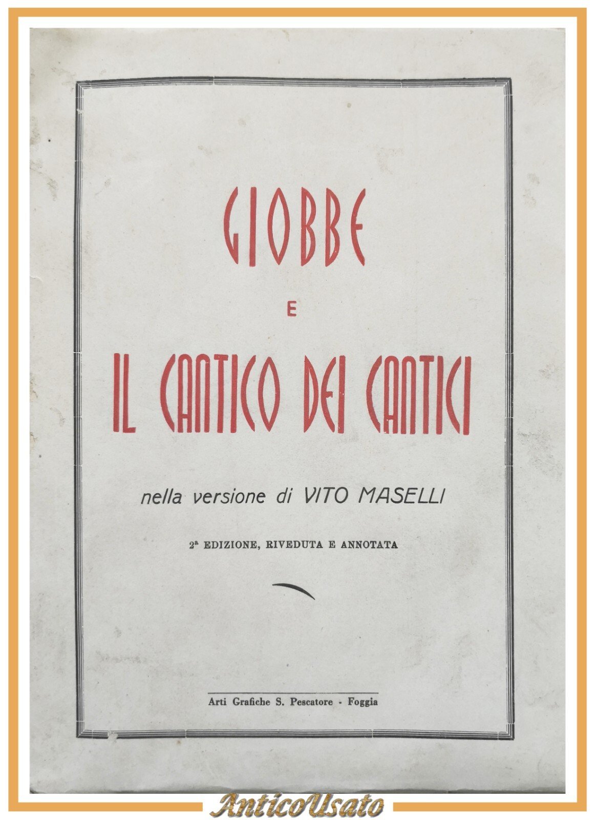 GIOBBE E IL CANTICO DEI CANTICI nella versione di Vito Maselli 1954 Libro