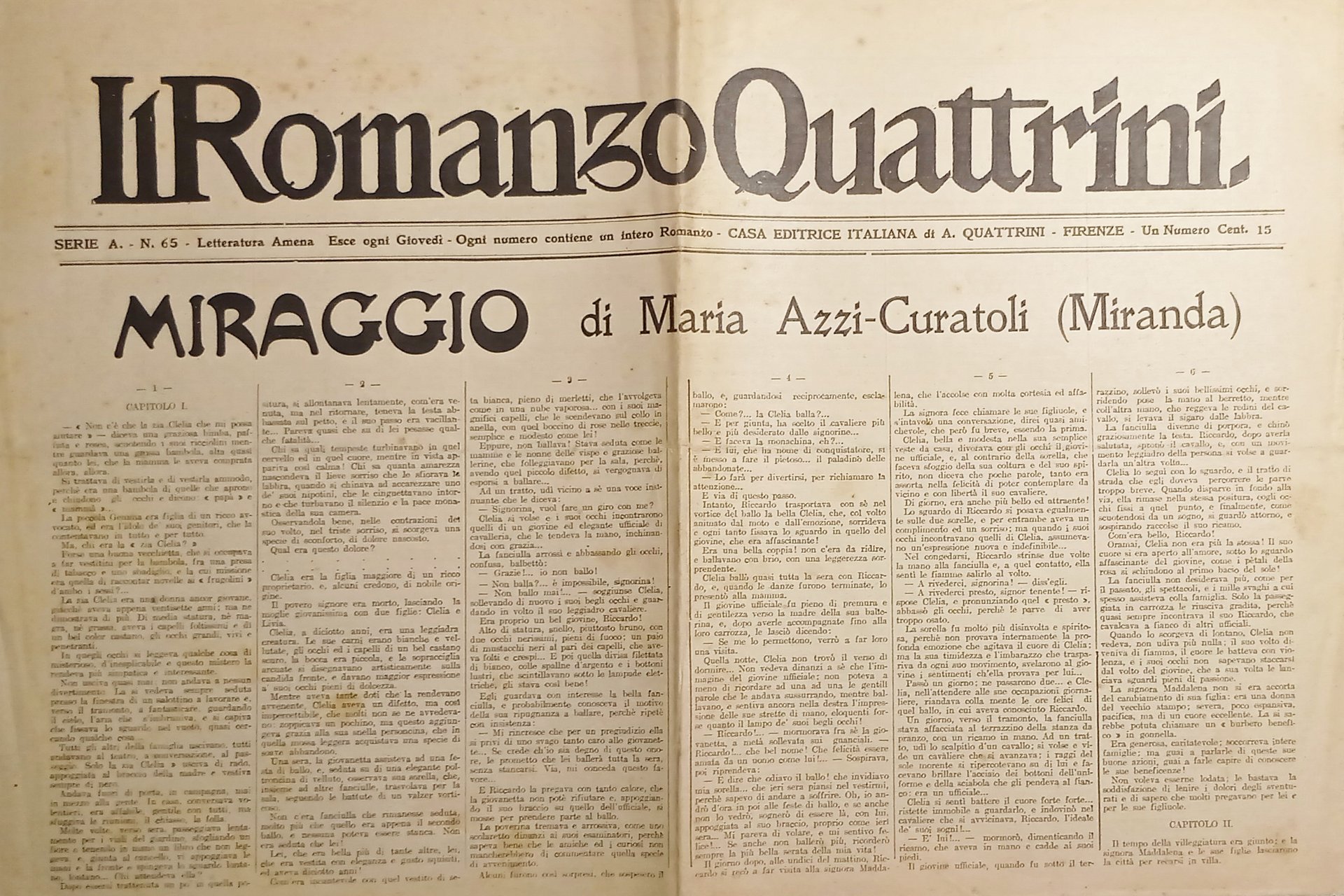 Giornale - Il Romanzo Quattrini N. 65 - 1920 ca. Miraggio di Maria Azzi-Curatoli