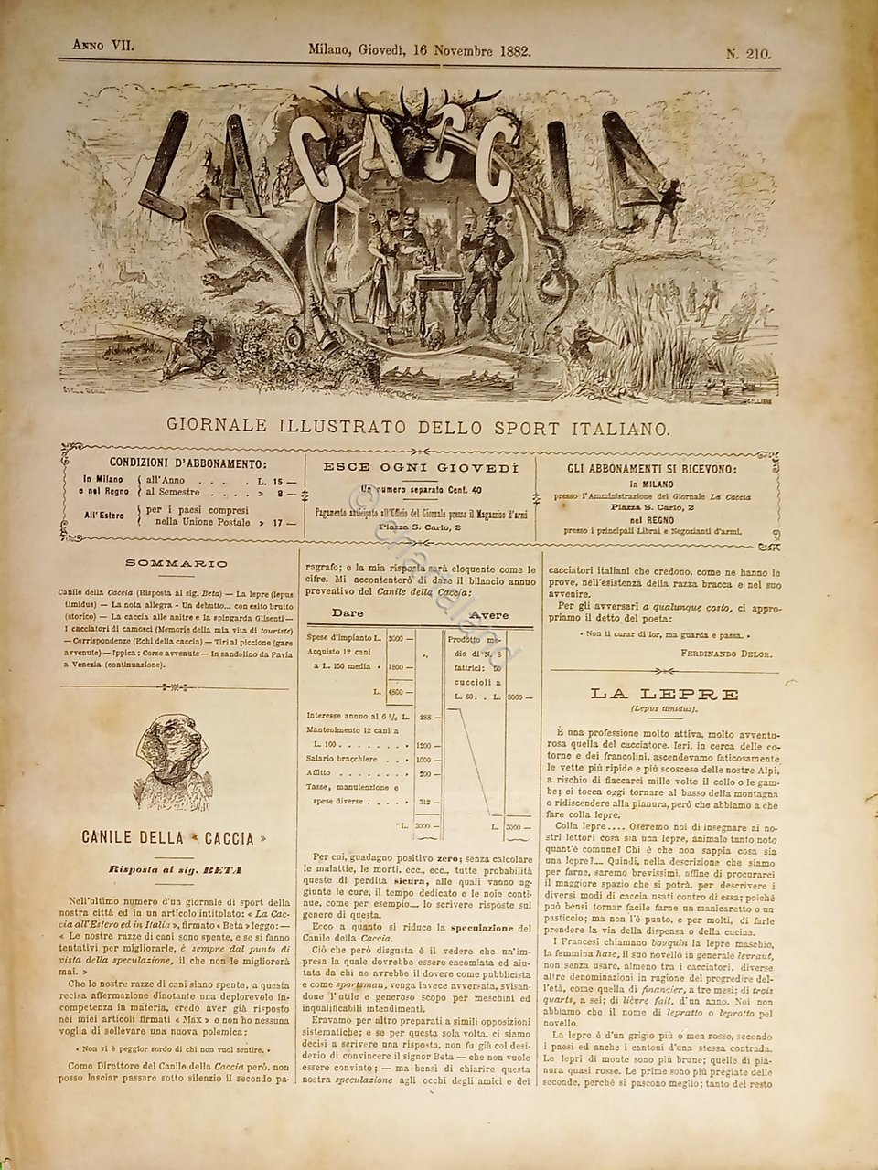 Giornale Illustrato dello Sport Italiano - La Caccia N. 210 - 16 Novembre 1882