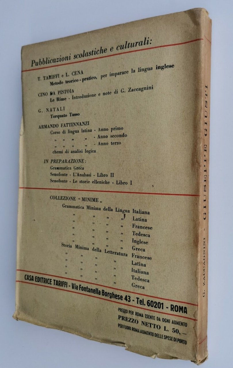 GIUSEPPE GIUSTI L'UOMO IL POETA IL PATRIOTA di Guido Zaccagnini.