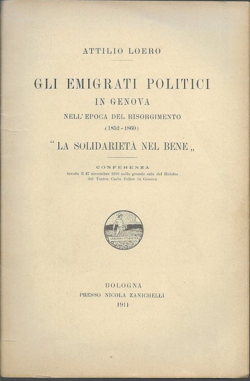 GLI EMIGRATI POLITICI IN GENOVA NELL ' EPOCA DEL RISORGIMENTO " LA SOLIDARIETA' NEL BENE "
