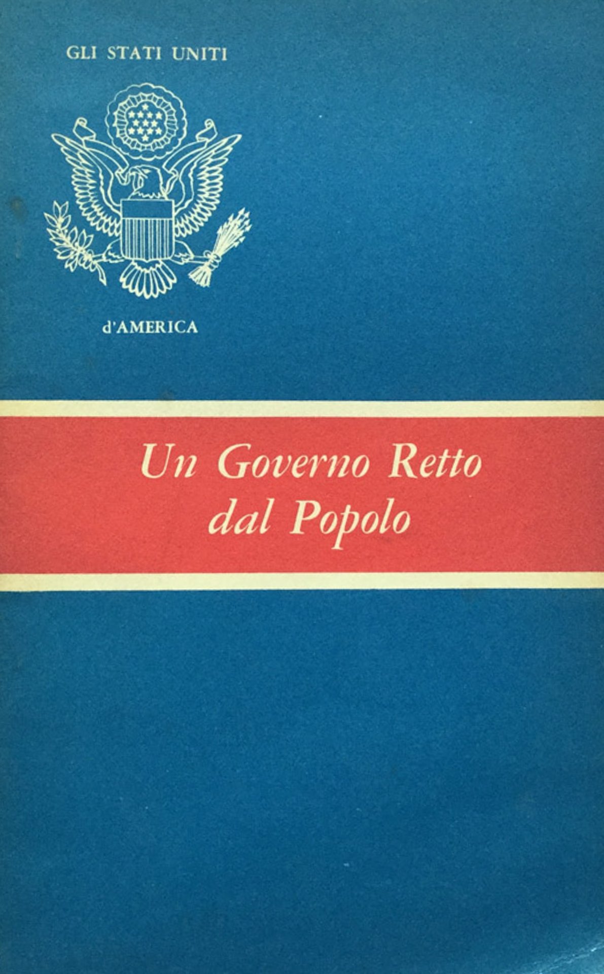 Cm 23 br. edit., pp.(4)-136- cartina al verso della cop. ant. e vari dis. n.t. Volumetto del 1950 circa basato sul libro La Nostra Costituzione e il Nostro Governo , per gli immigrati in attesa della cittadinanza americana. Testo de La Costituzione U.S.A. in fine 870 - V In Ottavi (15-23cm ) Buono (Good) Buono