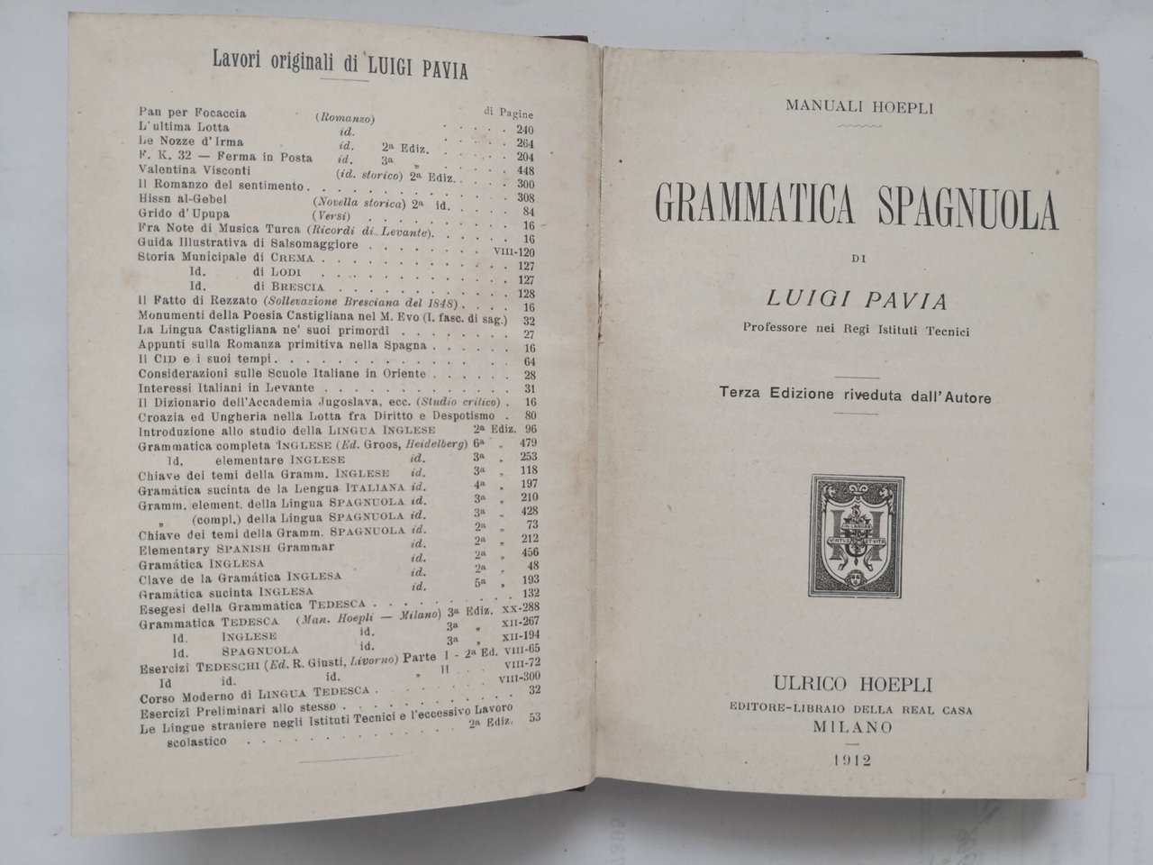 GRAMMATICA SPAGNOLA di Luigi Pavia 1912 Ulrico Hoepli Libro Manuale