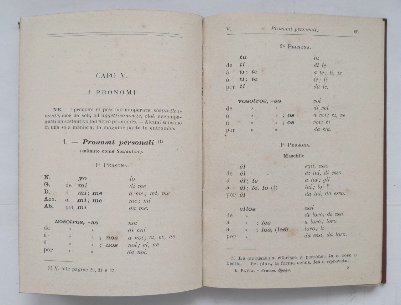 GRAMMATICA SPAGNOLA di Luigi Pavia.