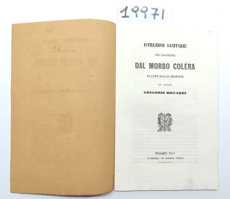 Gregorio Ricciardi Istruzioni sanitarie per garantirsi dal morbo colera Pesaro 1855