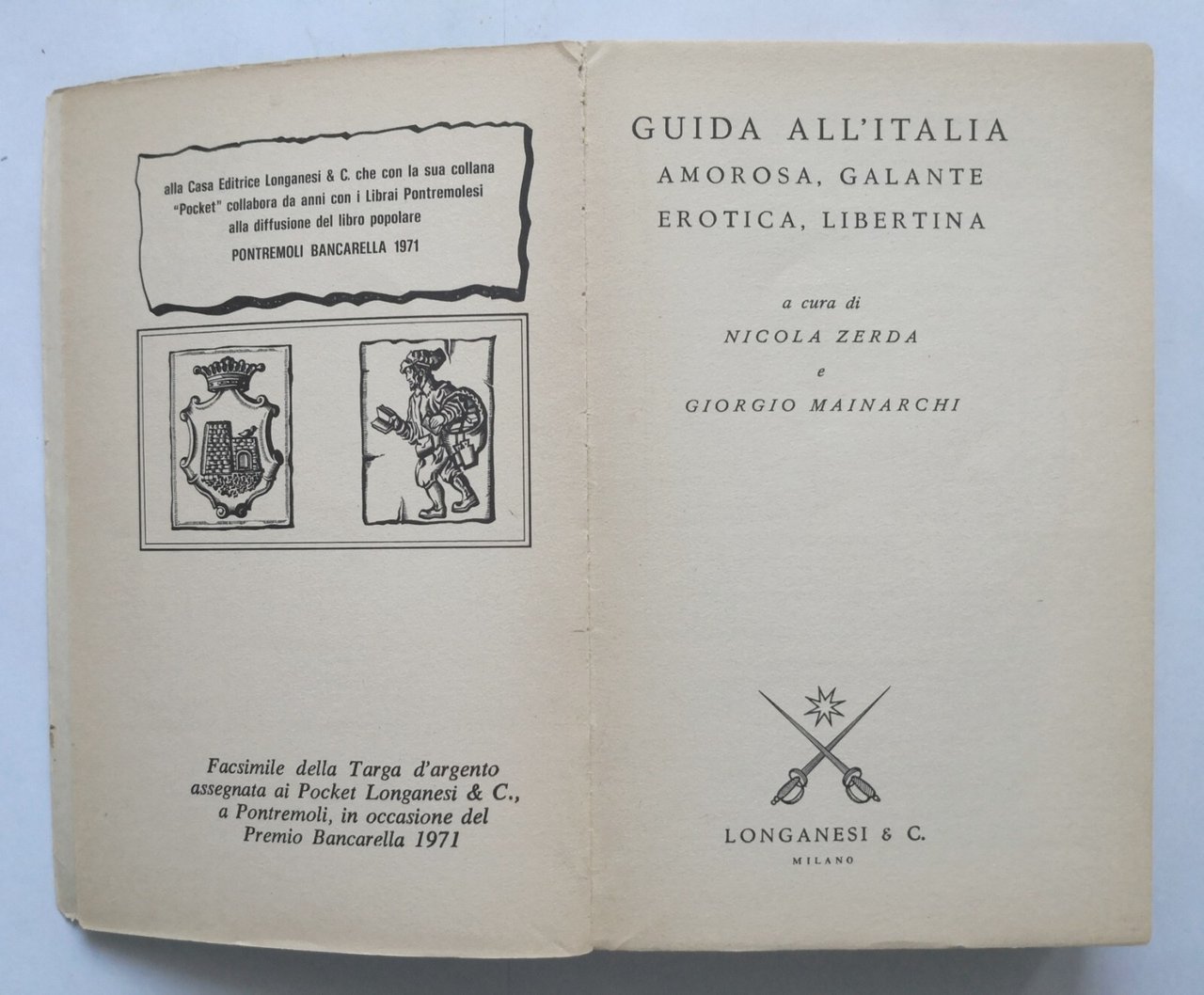 GUIDA ALL'ITALIA AMOROSA GALANTE EROTICA LIBERTINA 1974 Longanesi Libro Zerda