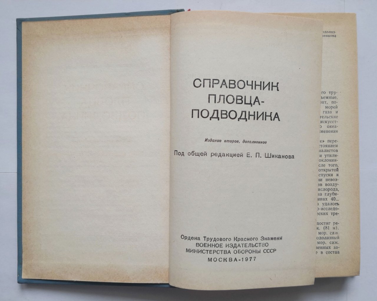 GUIDA DEL NUOTATORE DEL SOTTOMARINO (Справочник пловца-подводника) a cura di E.P. Shikanov.