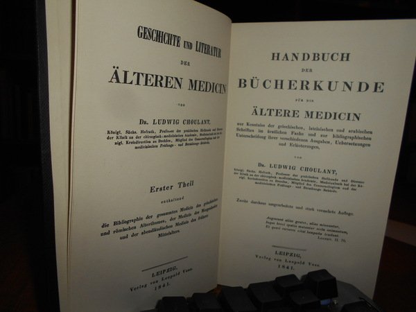 LUDWIG CHOULANT. München, Drucke, 1926. Handbuch Der Bücherkunde Für Die Ältere Medicin. In-16°, tela bleu con titolo in oro al dorso. xxi, 434 pp. In ottimo stato di conservazione. D - II - 5