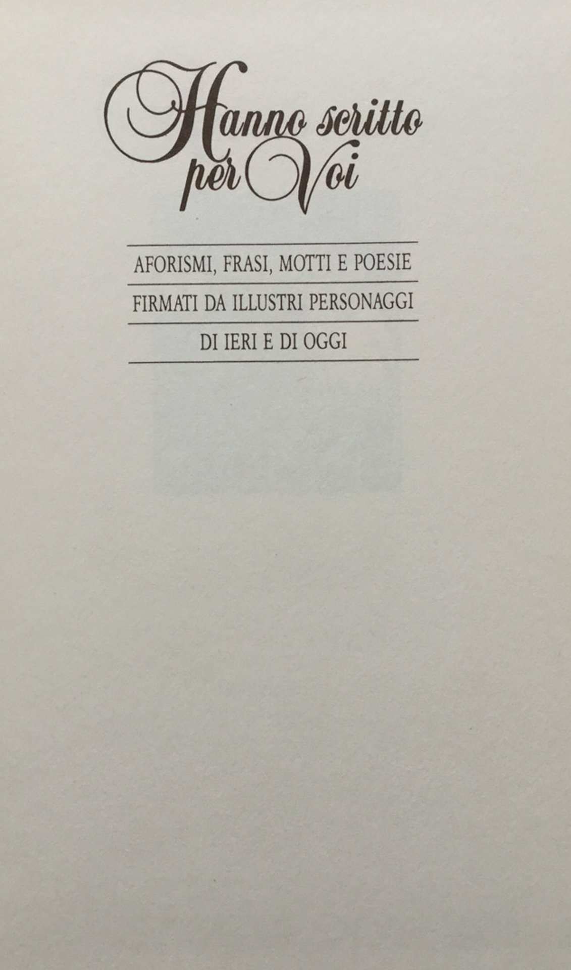 Ampia raccolta di Aforismi, frasi, motti e poesie firmati da illustri personaggi di ieri e di oggi. In cofanetto. Le illustrazioni nelle aperture di capitolo sono di Aubrey Beardsley. 12 Ottimo (Fine) Ottimo