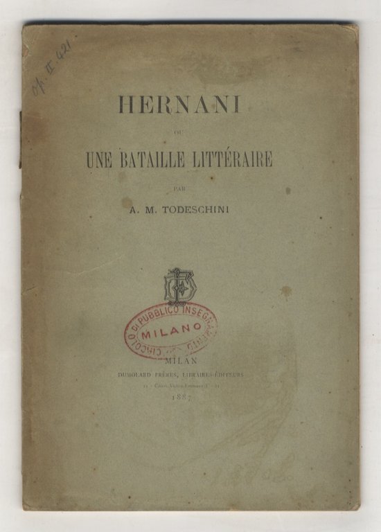 Hernani ou une bataille litteraire Lecture faite par A.M. Todeschini au Circolo di Publico Insegnamento de Milan le 8 mai 1887.
