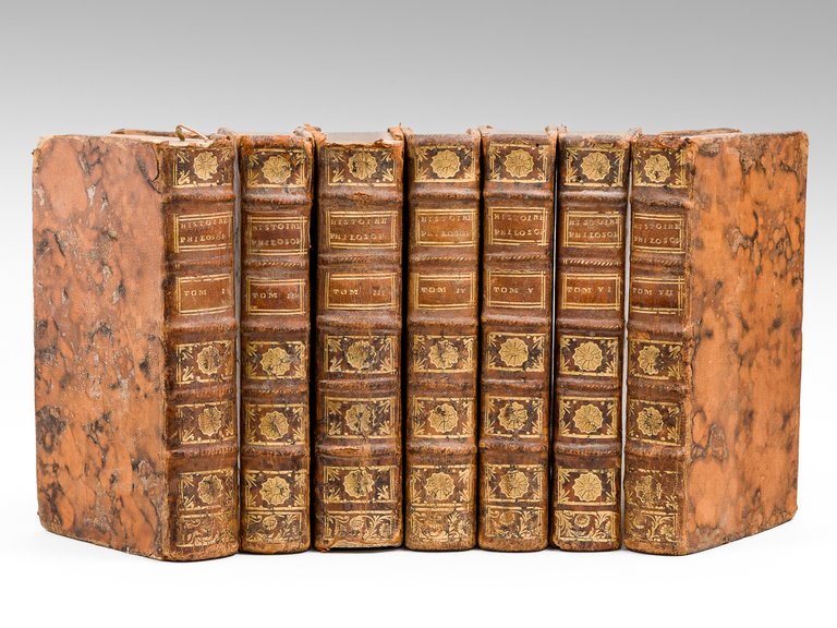 Exemplaire bien complet des 7 cartes dépliantes, des 7 frontispices et du portrait de l'Abbé Raynal. Etat satisfaisant (reliures frottées avec mq. en coiffes et coins, 2 piq. de vers marginale aux premiers ff. du tome premier, bon état par ailleurs)