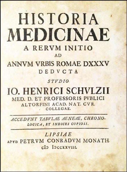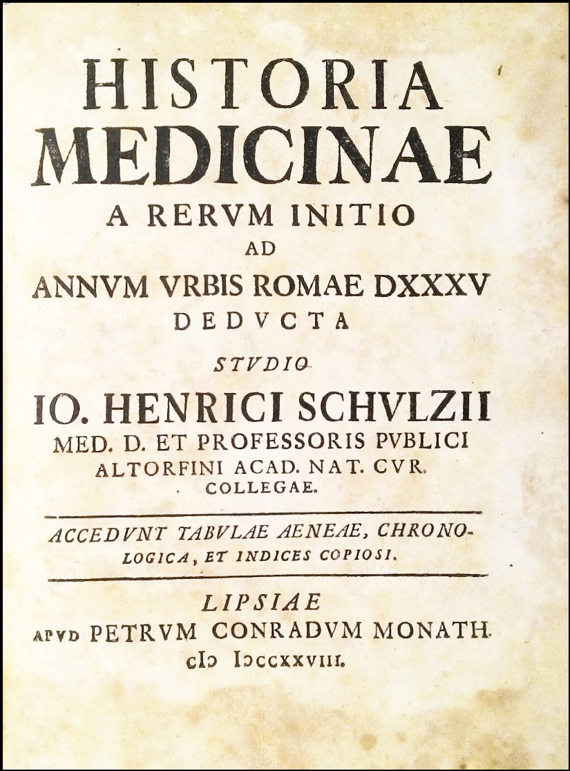 Historia medicinae a rerum initio ad annum vrbis Romae 535 deducta studio Io. Henrici Schulzii … Accedunt tabulae aeneae, chronologica, et indices copiosi