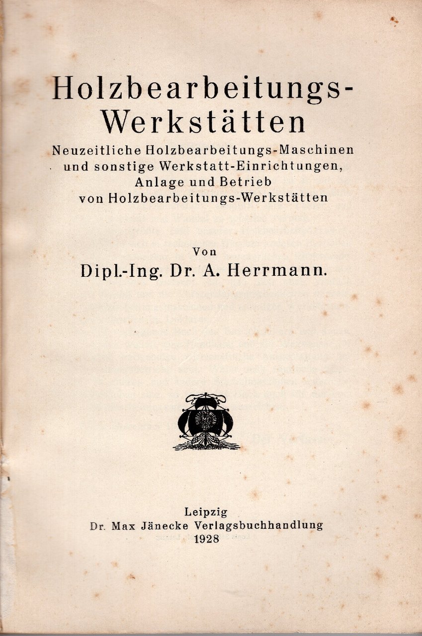 Holzbearbeitungswerkstätten. Neuzeitliche Holzbearbeitungs-Maschinen und sonstige Werkstatt-Einrichtungen, Anlage und Betrieb von Holzbearbeitungs-Werkstätten.