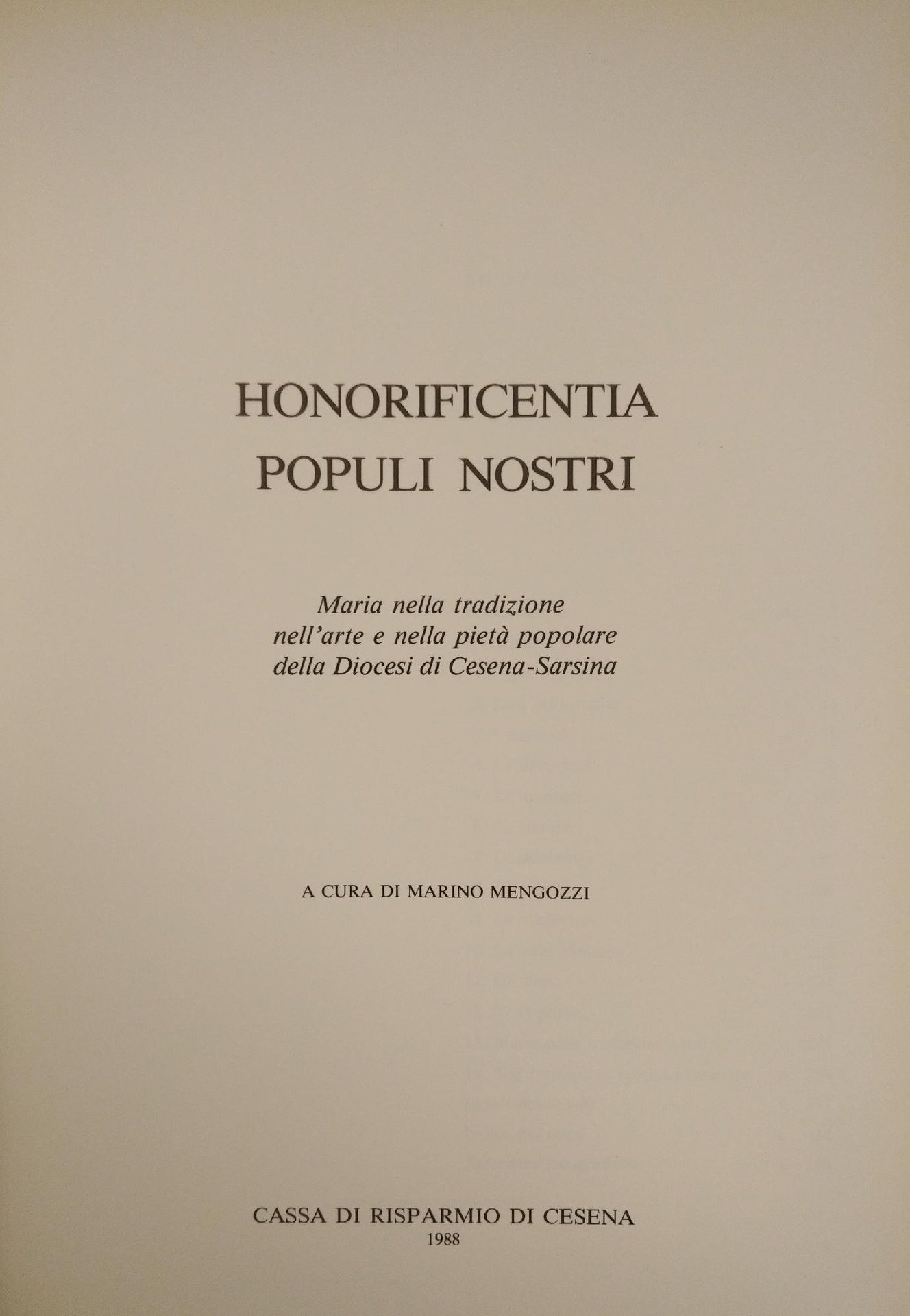 HONOREFICENTIA POPULI NOSTRI. MARIA NELLA TRADIZIONE NELL'ARTE E NELLA PIETA' POPOLARE DELLA DIOCESI DI CESENA - SARSINA