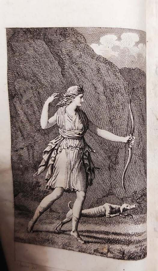 14 cm. 1: [4], 104 pagine e 1 tavola: ill. calcografica 2: [4], 142, [2] pagine. Contiene: Fable d'Erésichton tirée des Metamorphoses d'Ovide, legatura coeva in mezza pelle come da foto, cerniere allentate. Libro proveniente da biblioteca con i consueti timbri e sigle, volume dismesso. Fioriture rare. Greco antico e francese Buono (Good) .