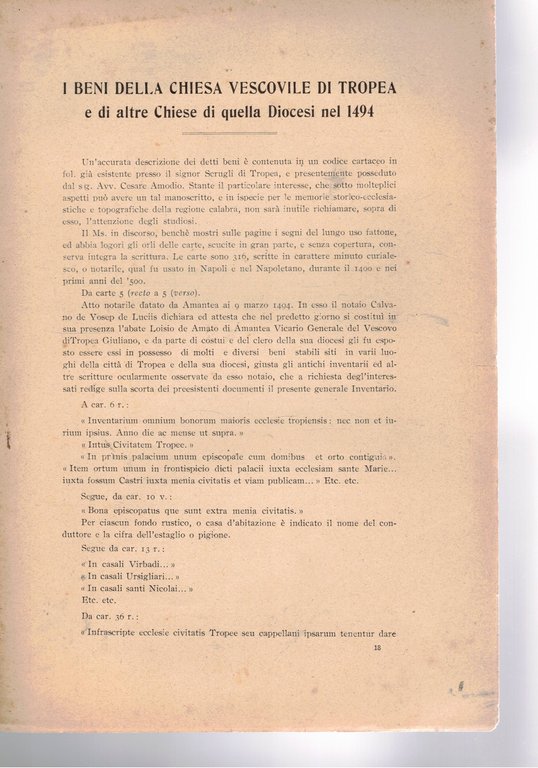 I beni della chiesa vescovile di Tropea e di altre chiese di quella diocesi nel 1494. Estratto dal Bollettino del bibliofilo diretto da Alfonso Miola.