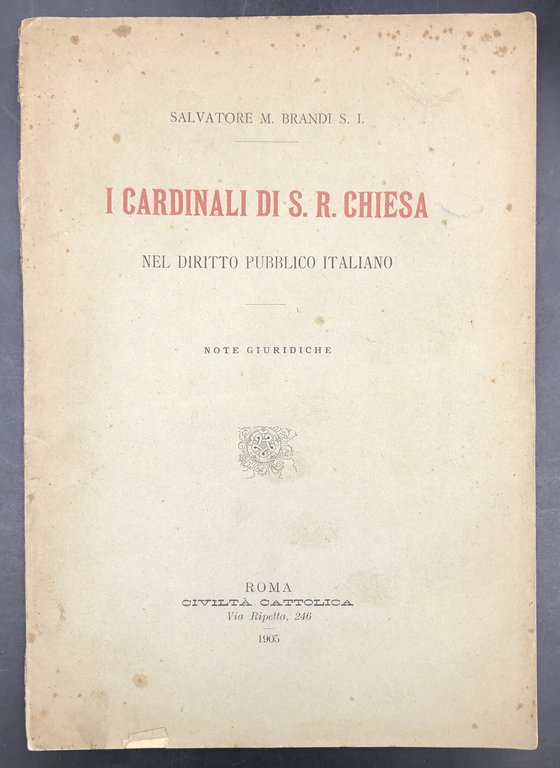 I CARDINALI di S.R. Chiesa nel DIRITTO PUBBLICO italiano. Note giuridiche.