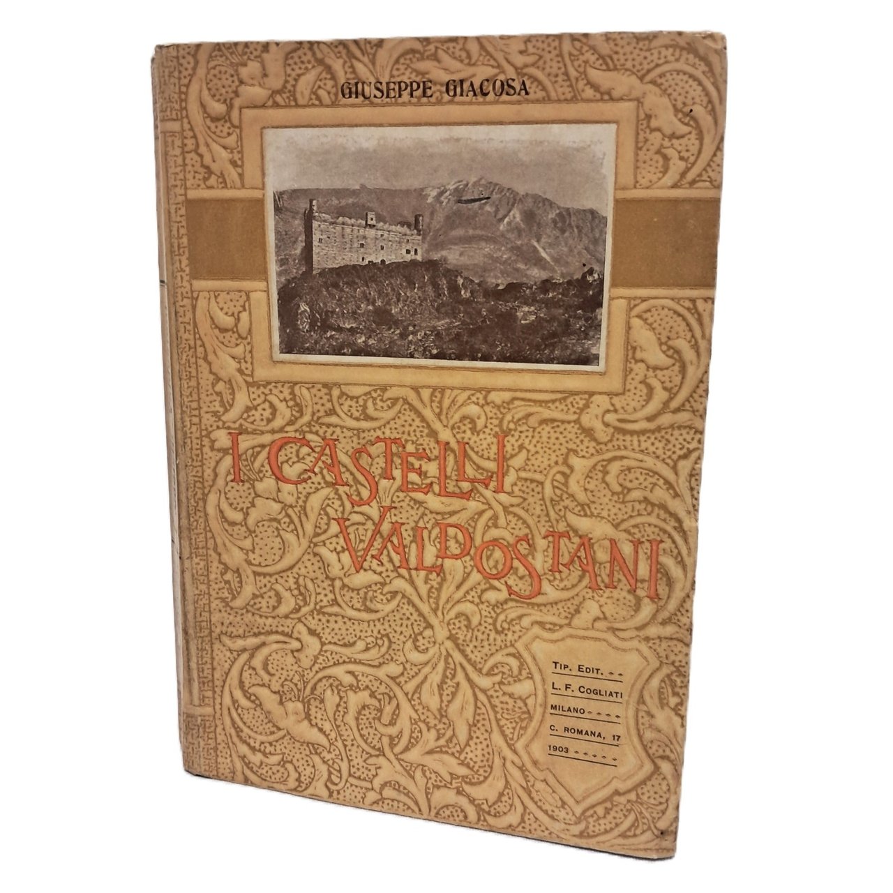 PRIMA EDIZIONE MINORE Prima non comune edizione moderna (sostituendo le fotografie alle incisioni della editio maior) in piccolo formato della celebre opera di Giacosa dedicata ad un'attenta descrizione dei castelli valdostani (inseriti anche due di quelli canavesani: Sparone e Masino), alla vita castellana e alla casata degli Challant. Con 29 vignette da foto originali. In brossura. Pp. 383. Ottime condizioni.