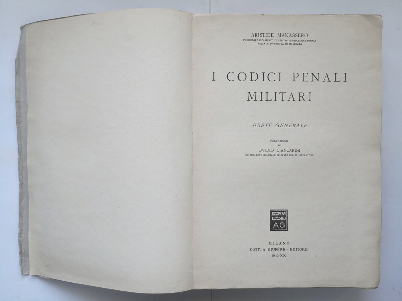 I CODICI PENALI MILITARI Parte generale di Aristide Manassero 1942 Giuffrè Libro