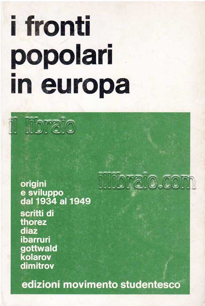 in 8°; pp. 270; br. Origini e sviluppo dal 1934 al 1949. Scritti di Thorez, Diaz, Ibarruri, Gottwald, Kolarov, Dimitrov