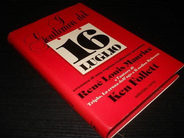 KEN FOLLETT, I Gentlemen del 16 luglio - Corno, I ed. 1982 - copertina rigida con sovracopertina, formato cm 14 x 21,5, traduzione di Alda Carrer, pag. 180 - buono stato e compatto ma brunitura un po' marcata delle pagine