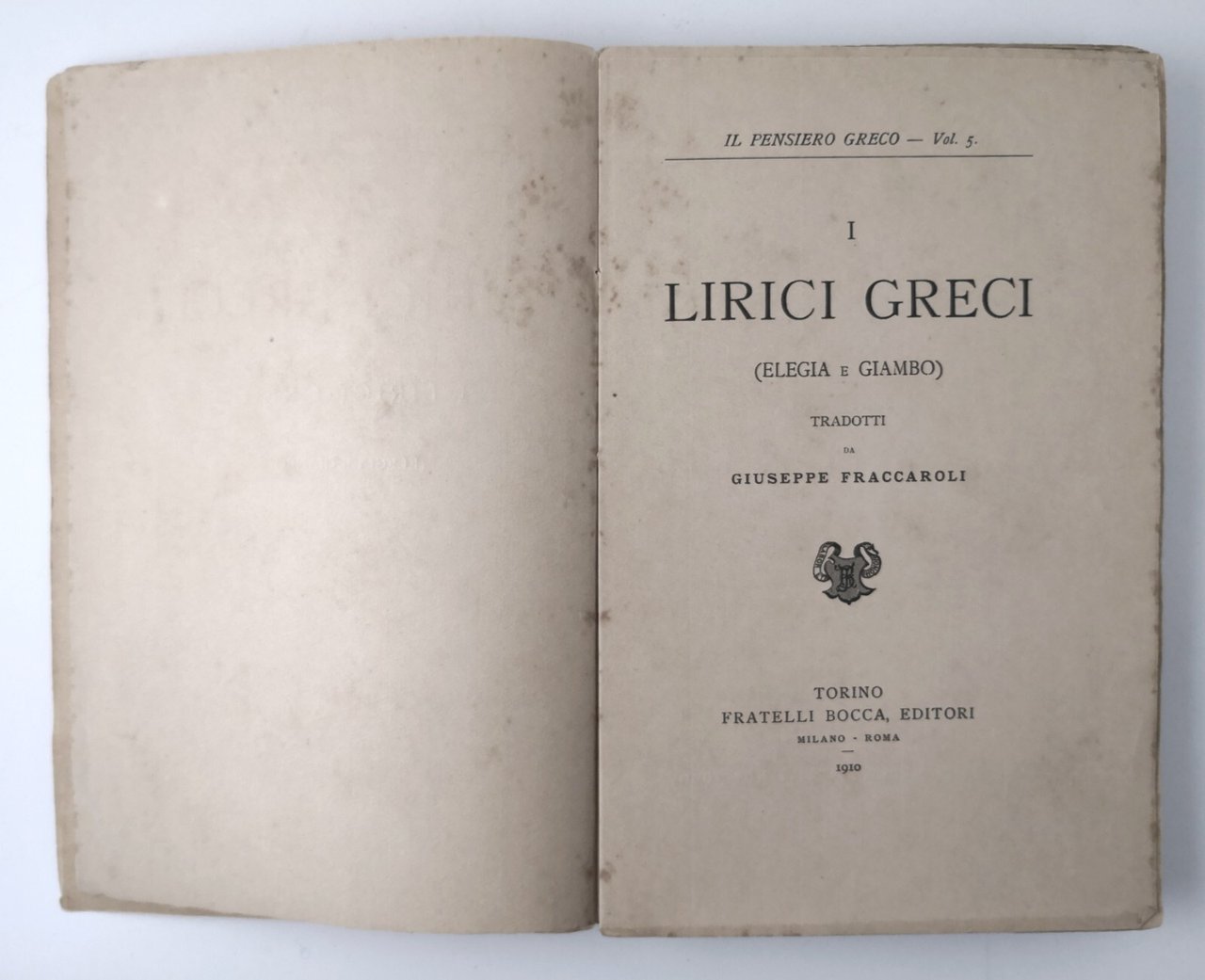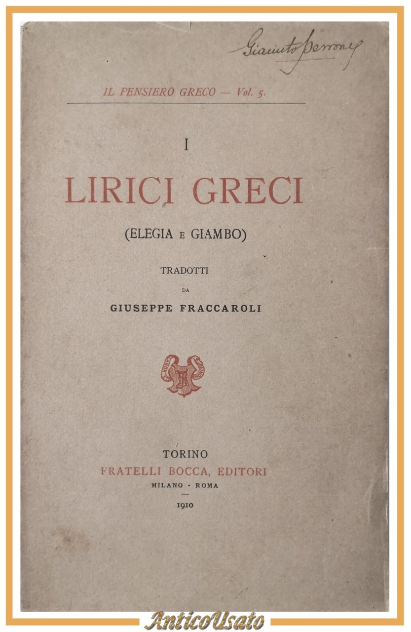 I LIRICI GRECI ELEGIA E GIAMBO di Giuseppe Fraccaroli 1910 Fratelli Bocca Libro