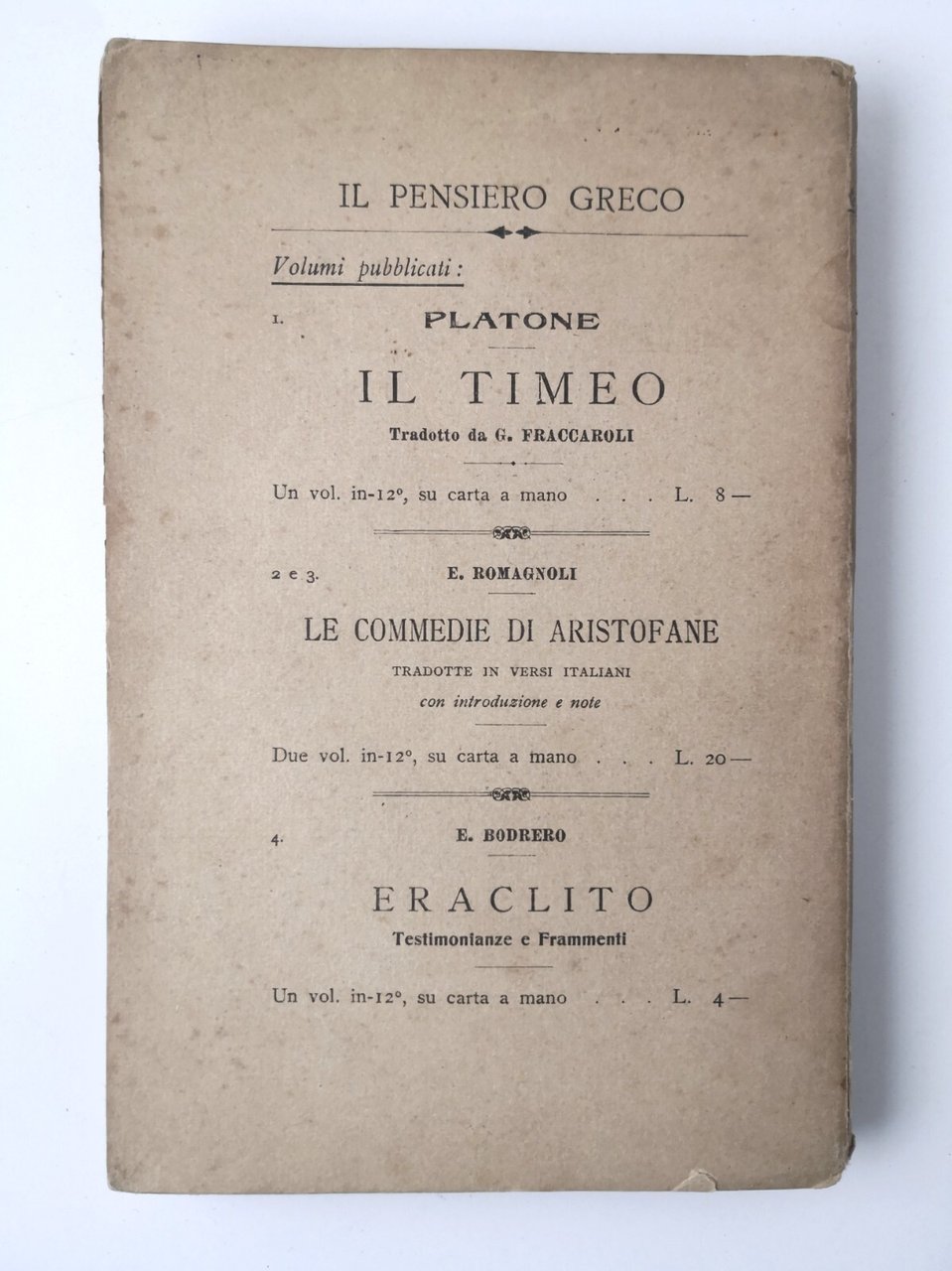 Fratelli Bocca Editore, 1910. Serie "Il Pensiero Greco" Volume 5.