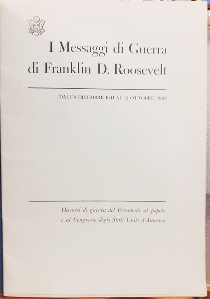 I MESSAGGI DI GUERRA DI FRANKLIN D. ROOSEVELT: DALL' 8 DICEMBRE 1941 AL 12 OTTOBRE 1942 - SUPPLEMENTO N.1. DAL 7 NOVEMBRE 1942 AL 30 LUGLIO 1943. Discorsi di guerra del Presidente al popolo e al Congresso degli Stati Uniti d' America.