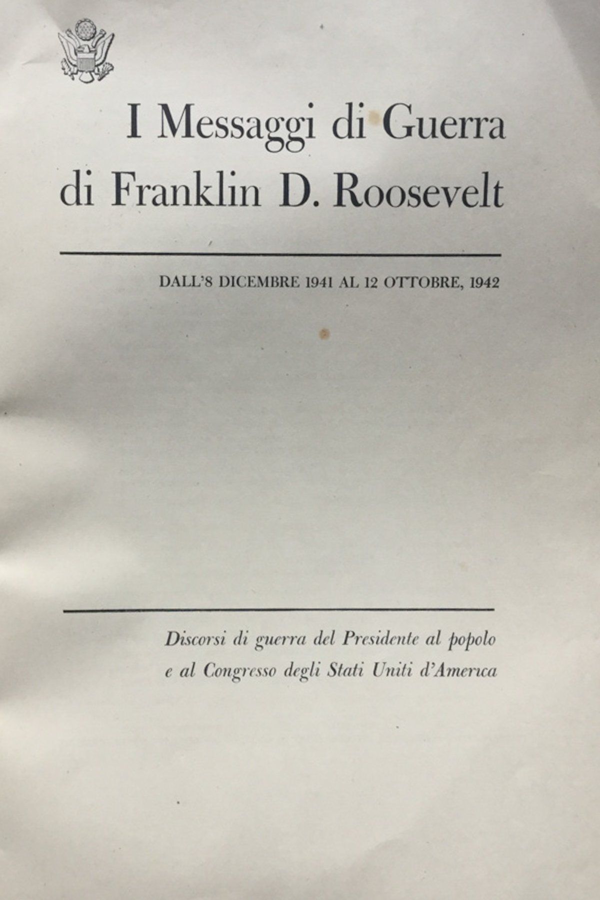 I messaggi di guerra di Franklin D. Roosvelt : dall'8 dicembre 1941 al 12 ottobre 1942 : discorsi di guerra del presidente al popolo e al congresso degli Stati Uniti d'America