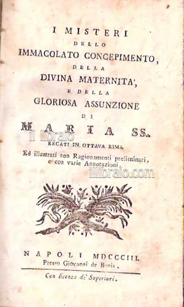 I misteri dello Immacolato Concepimento, della Divina Maternità, e della Gloriosa Assunzione di Maria SS. recati in ottava rima ed illustrati con ragionamenti preliminari, e con varie annotazioni