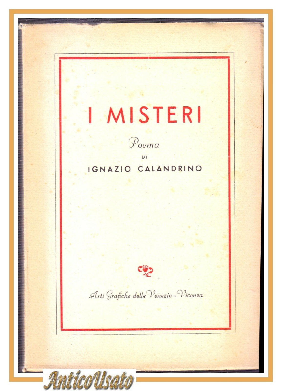 I MISTERI poema di Ignazio Calandrino 1950 Autografato Libro Poesia Vicenza
