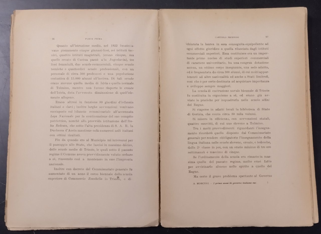 I PRIMI ANNI DI GOVERNO ITALIANO NELLA VENEZIA GIULIA Mosconi 1924 Cappelli libr