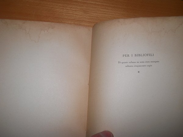 - trascrivo da ultima pagina: PER i BIBLIOFILI - di questo volume ne sono state stampate soltanto cinquecento copie