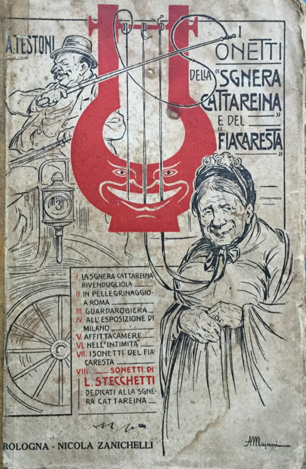 La Sgnera Cattareina rivendugliola, In pellegrinaggio a Roma, Guardarobiera, All'esposizione di Milano, Affittacamere, Nell'intimità, I Sonetti del Fiacaresta. Sonetti di L. Stecchetti dedicati alla Sgnera Cattareina. In Quarti ( 24-30cm ) Mediocre (Poor) Accettabile