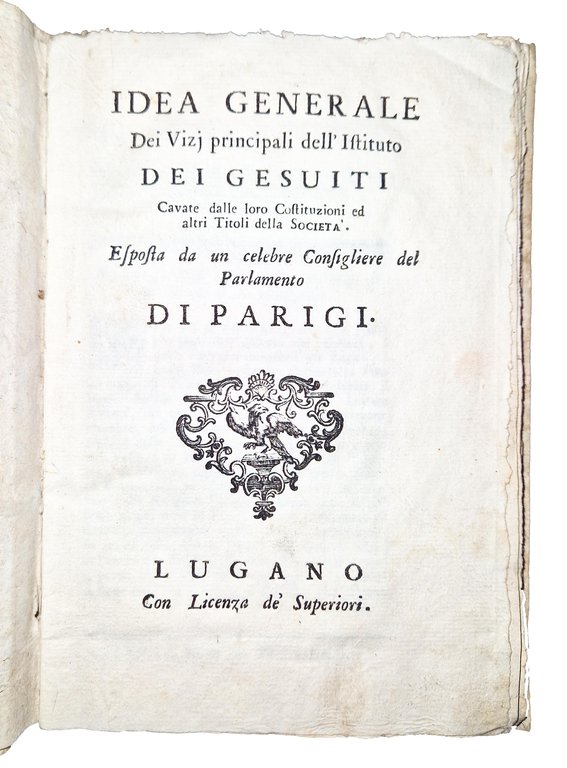 Idea generale dei vizj principali dell'Istituto dei Gesuiti cavate dalle loro costituzioni ed altri titoli della Società. Esposta da un celebre consigliere del Parlamento di Parigi.