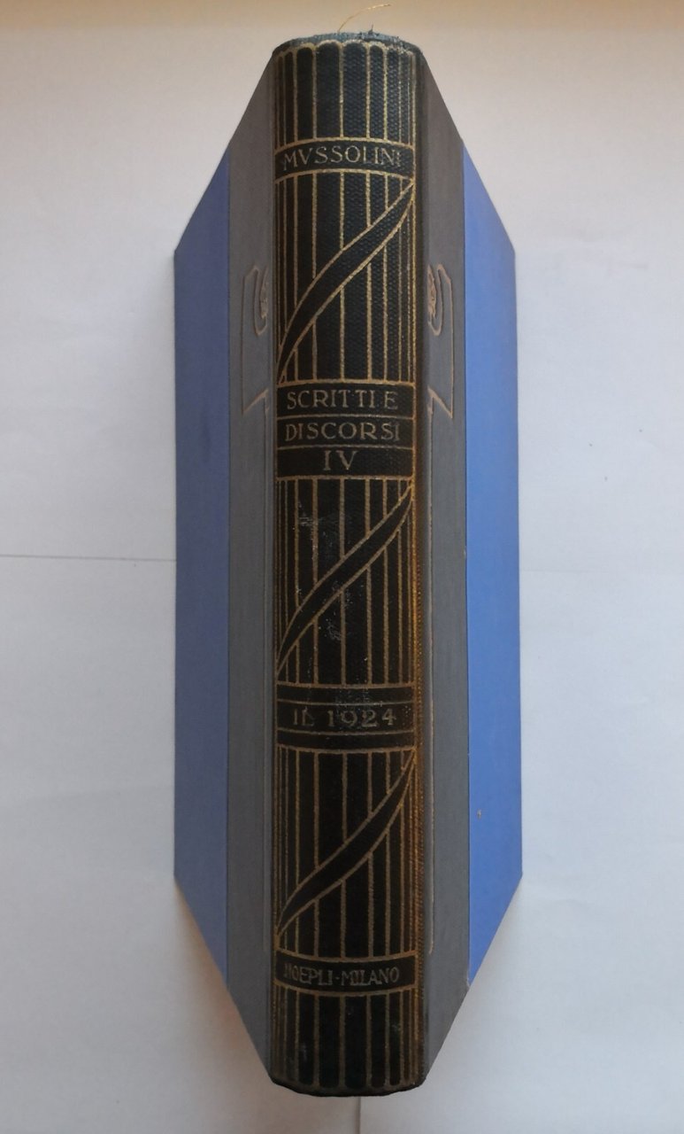 Editore Ulrico Hoepli, 1934. Scritti e Discorsi numero 4.455 pagine, fotografia in bianco e nero in antiporta. Copertina editoriale in tutta tela. Stato di conservazione: molto buono (pagine normalmente ingiallite) Libro usato fascismo