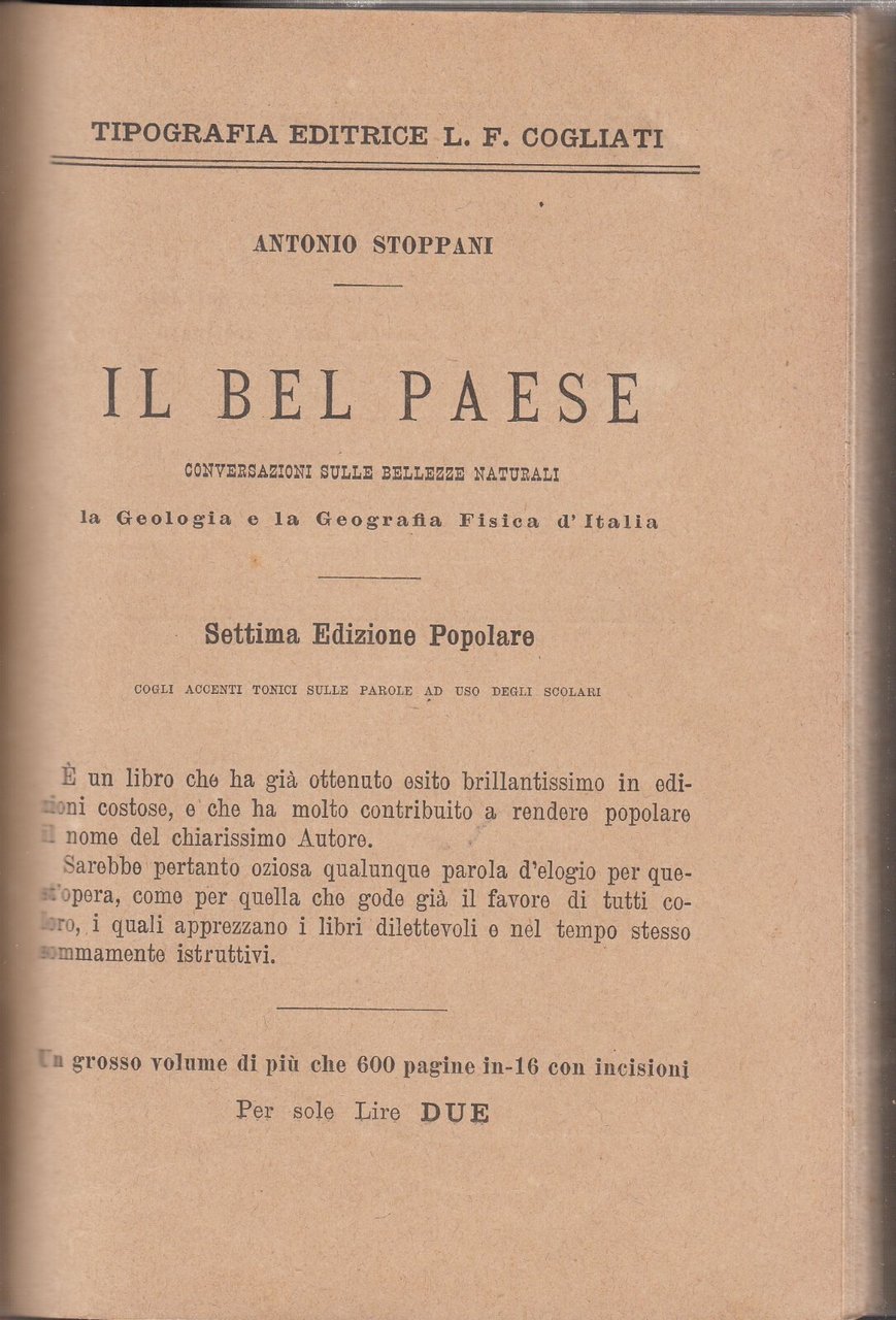 IL BEL PAESE e LA SANTITÀ DEL LINGUAGGIO di Antonio Stoppani 1901 1890 Libro