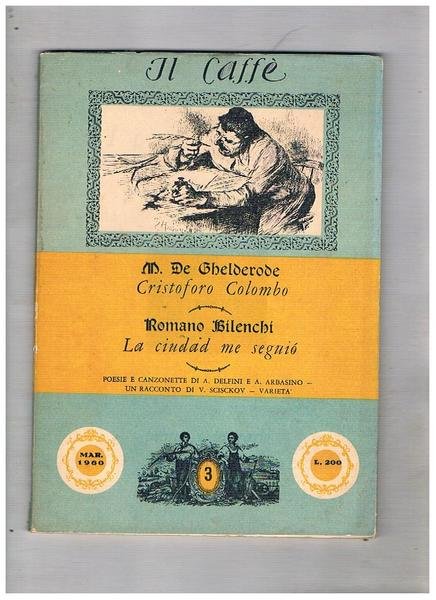 Il caffè politico e letterario mensile, n° 3 del 1960. Cristoforo Colombo di M. De Chelderode; la ciudad me seguiò di Romano Bilenchi; poesie e canzonette di A. Delfini, A. Arbasimo; un racconto di V. Sciskov; ecc.