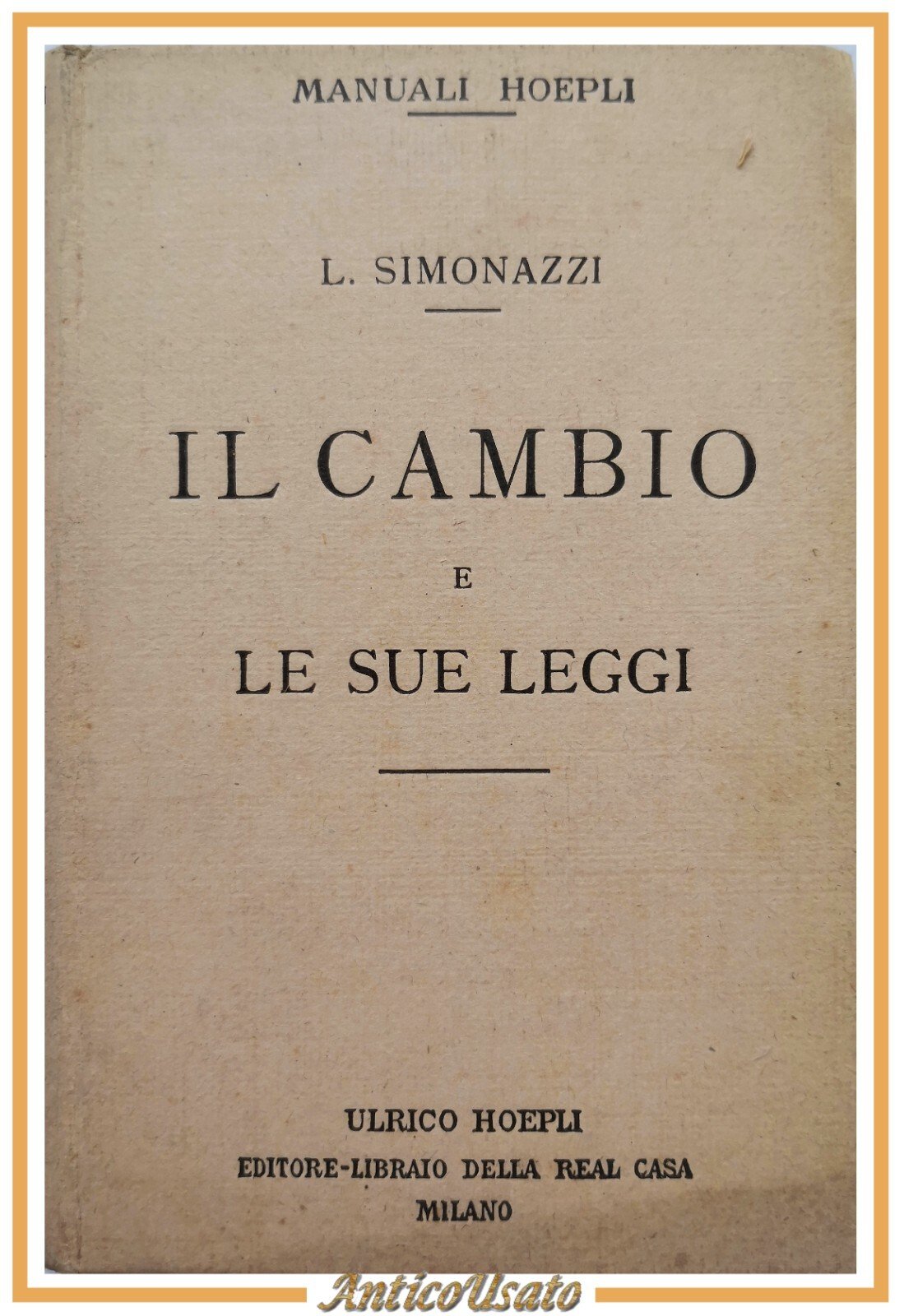 IL CAMBIO E LE SUE LEGGI di Luigi Simonazzi 1923 Ulrico Hoepli Libro manuale