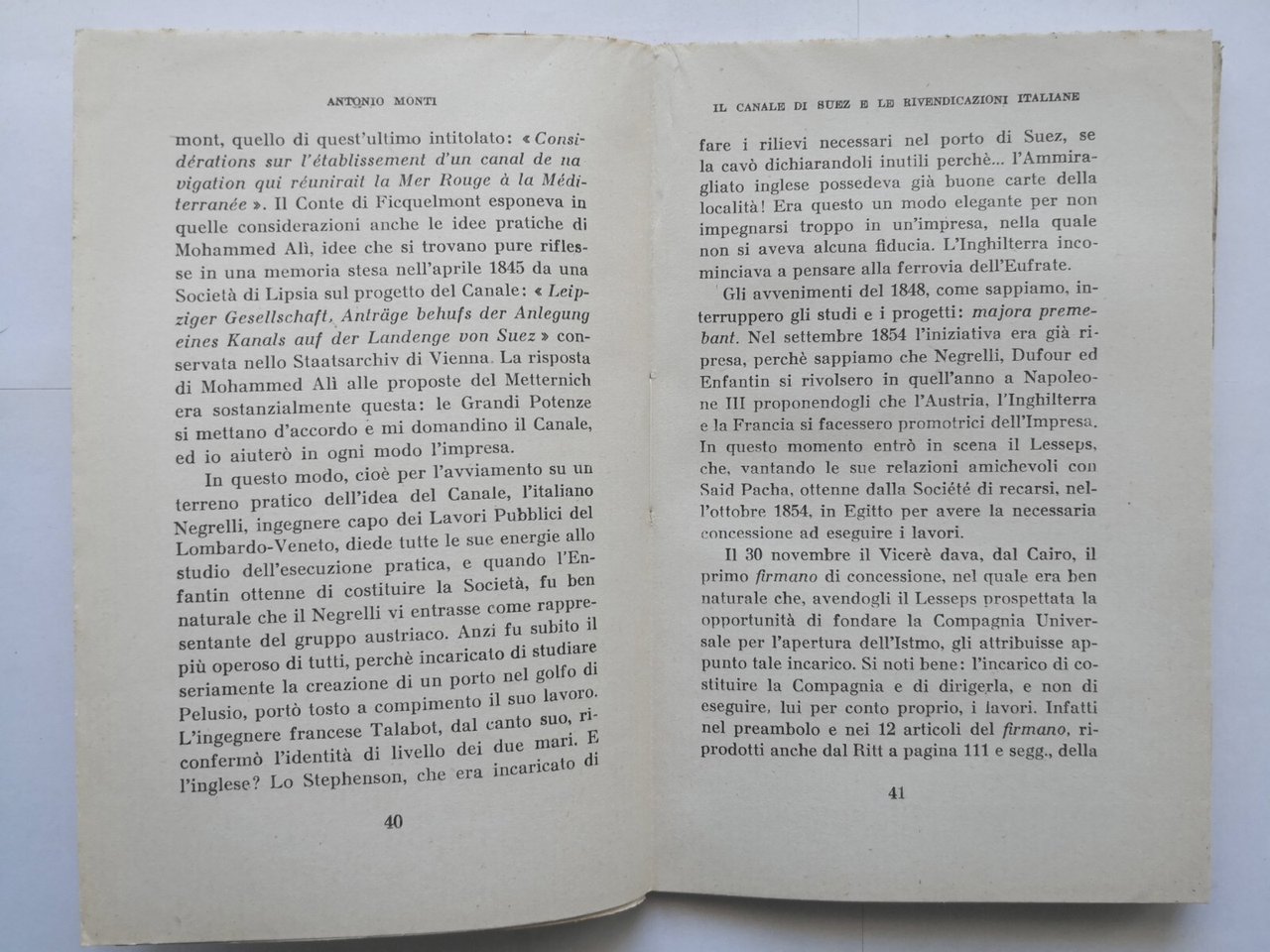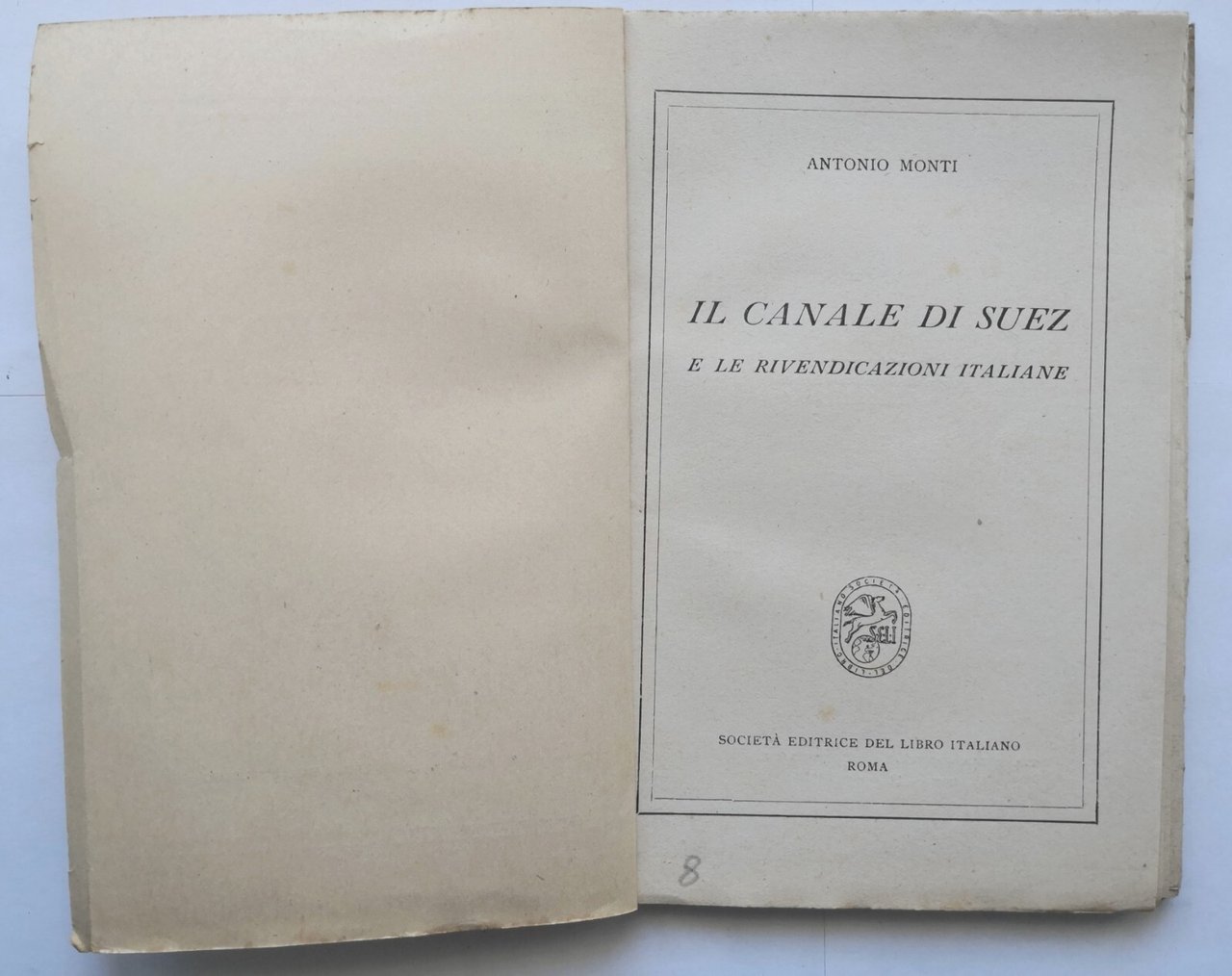 IL CANALE DI SUEZ E LE RIVENDICAZIONI ITALIANE di Antonio Monti 1940 SELI Libro