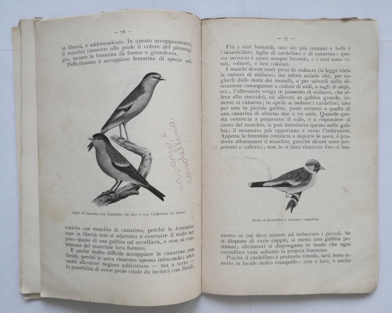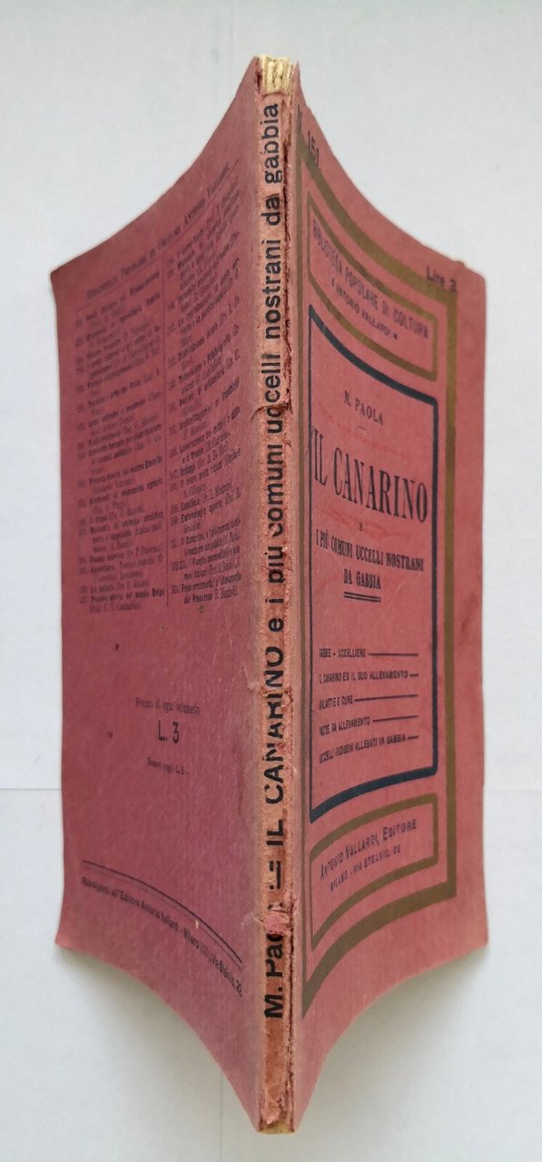 IL CANARINO di Paola 1934 Antonio Vallardi libro comuni uccelli gabbia nostrani