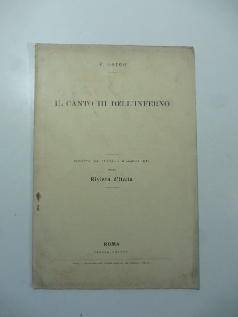 In 8 (cm 16 x 23,5), pp. 15 + (1b) ma in realta' numerate da 650 a 663 in quanto estratto editoriale. Brossura editoriale. Estratto editoriale dalla Rivista d'Italia, maggio 1914.