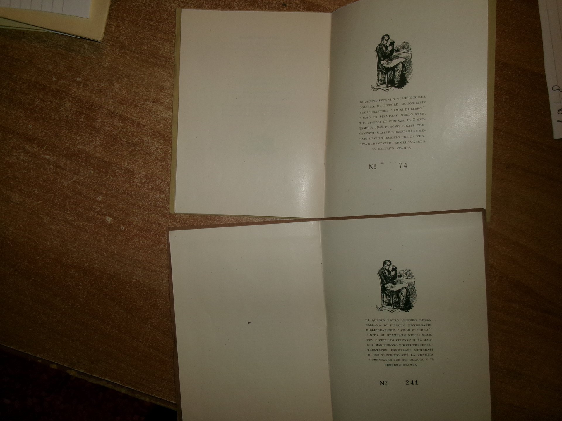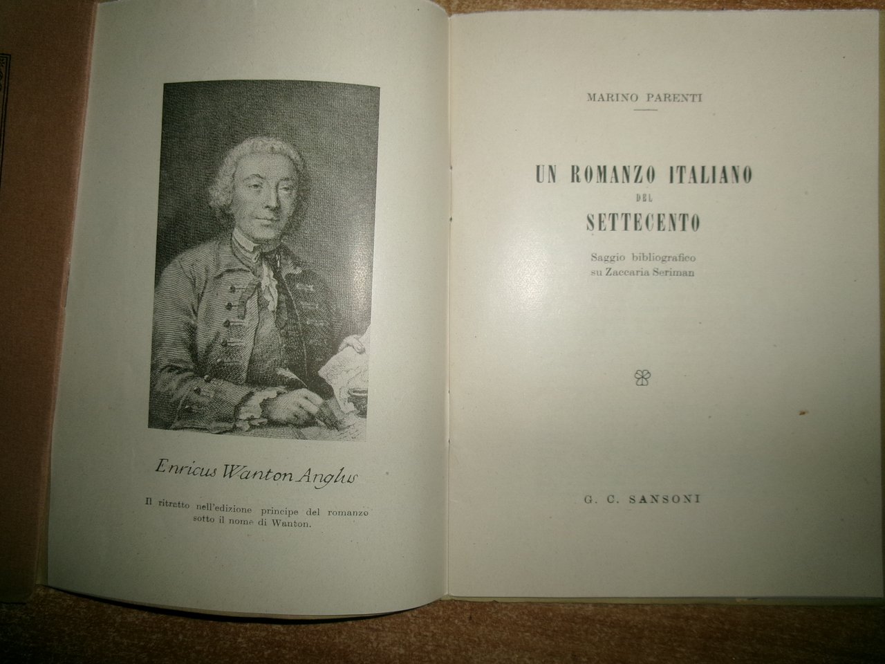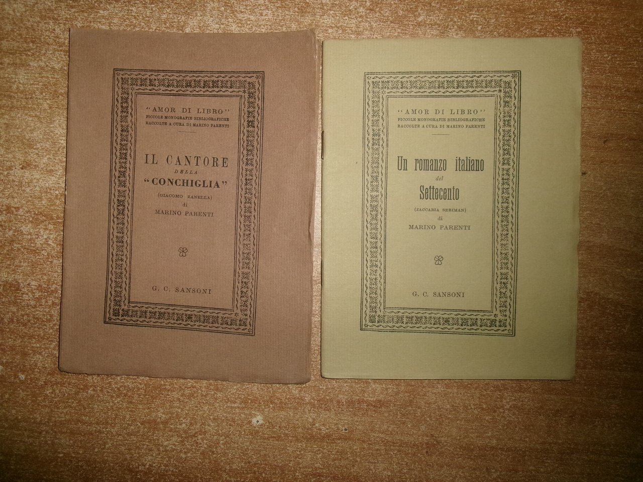 MARINO PARENTI. Firenze, G.C. Sansoni, 1948. IL CANTORE della "CONCHIGLIA". Rarità bibliografiche Zanelliane. UN ROMANZO ITALIANO del SETTECENTO. (Zaccaria Seriman). 2 opuscoli in-16°, br. con punti metallici. 20 pp.; 27, (2) pp. con illustrazioni e fac-simili n.t. Edizioni tirate in 333 esemplari numerati (241 - 74). 2 opuscoli in ottimo stato di conservazione Neg. mob. 2 entro busta trasp.