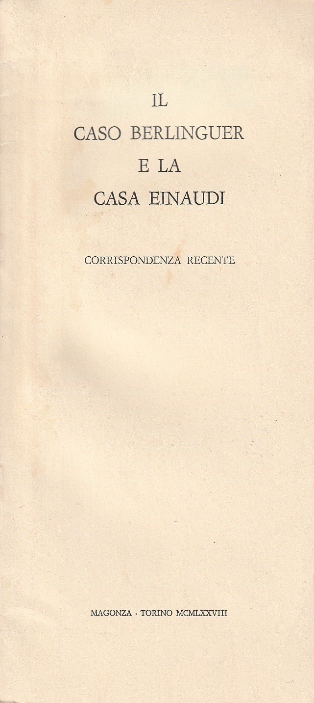 Il caso Berlinguer e la casa Einaudi. Corrispondenza recente | Livres anciens et modernes | [Sanguinetti Gianfranco]