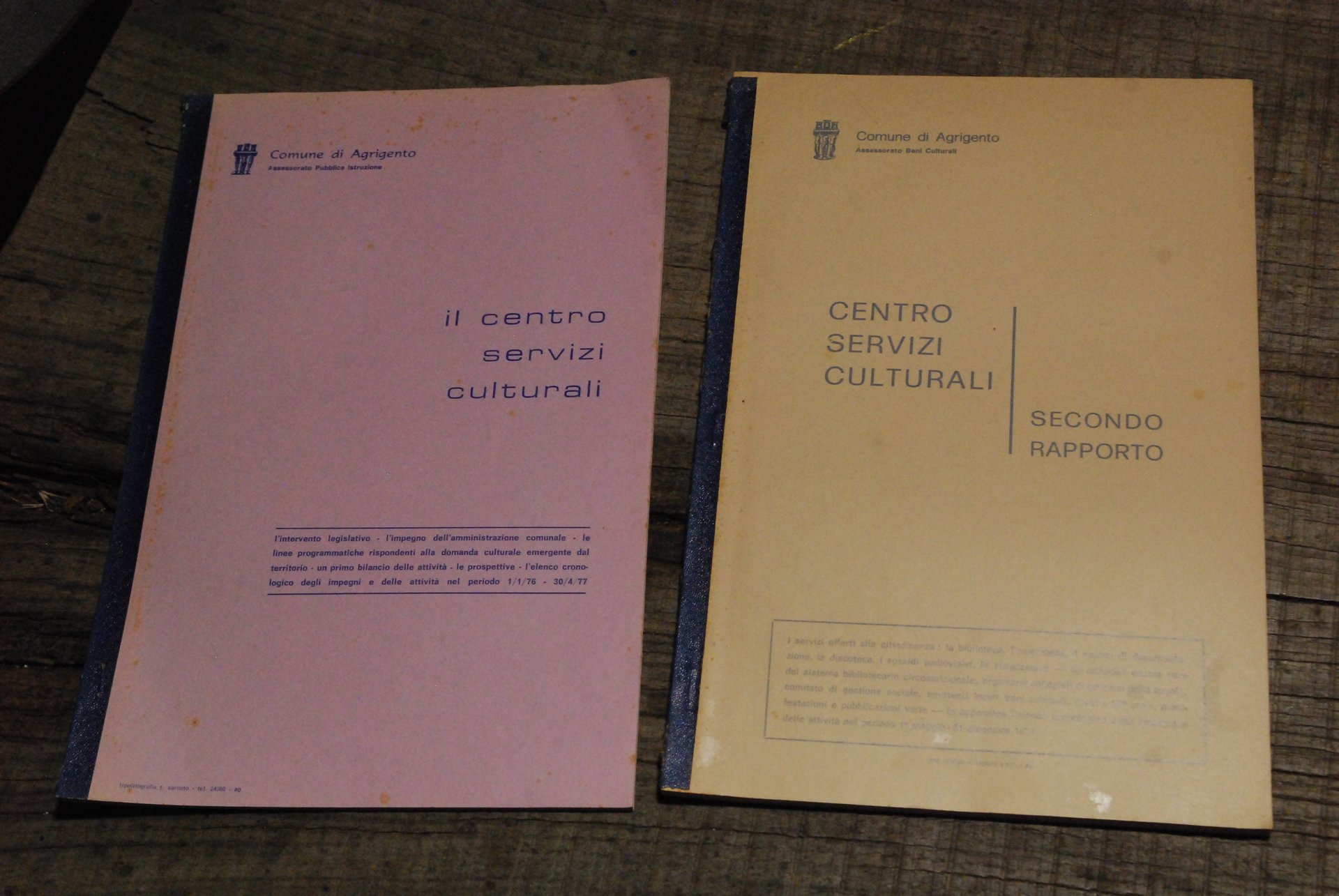 comune di agrigento il centro servizi culturali primo e secondo rapporto 1976. .